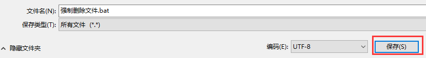 4.点击保存类型为所有文件,文件名为.bat格式。