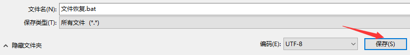 3.然后我们点击文件中的“另存为”将文件类型改为 所有文件,文件名为文件恢复.bat即可。
