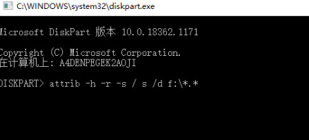 2.接着我们在弹出窗口中输入“ attrib -h -r -s / s / d f: *.* ”然后按回车确认运行此命令。这里的“f”是你的u盘驱动器号。之后,输入“ exit”并点击“ Enter”关闭该窗口。查看隐藏的文件和文件夹是否出现。