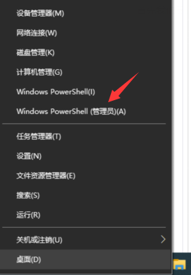 1.首先我们鼠标右键点击开始菜单选择”windows power shell(管理员)“选项。