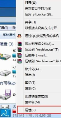 2.我们也可以右键选择u盘,点击“属性”按钮。