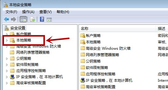5、之后我们在本地安全策略中点击左侧的“本地策略”选项。