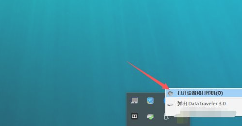 2.确认不是U盘受损之后,我们点击电脑右下角,点击打开设备和打印机。
