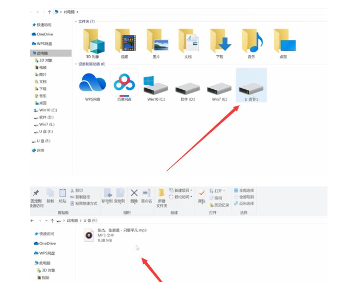 3.然后点开电脑打开U盘就可以看到自己下载的歌曲了。