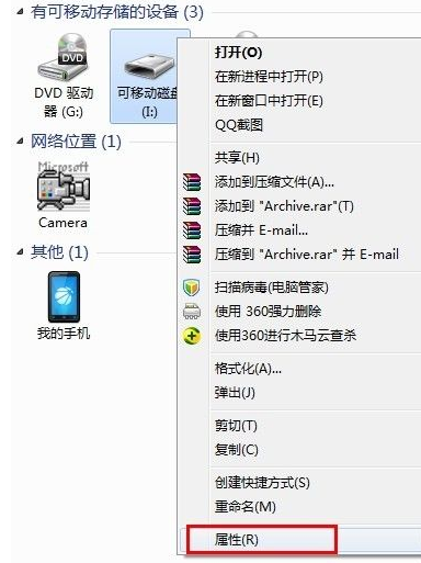 1.导致U盘打不开的最直接的原因是文件系统损坏。对此常用的方法是对磁盘进行修复。右击“可移动磁盘”,从弹出的右键菜单中选择“属性”。