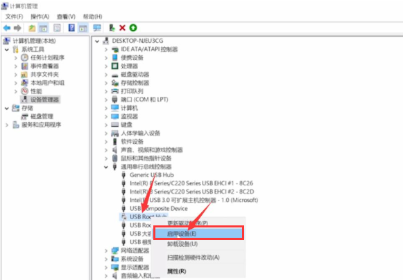 5.我们再次右键单击该设备,选择”启用设备“,最后重新插入U盘即可。