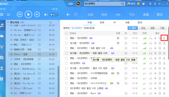 3.在搜素框中搜素自己喜欢的歌曲下载下来。
