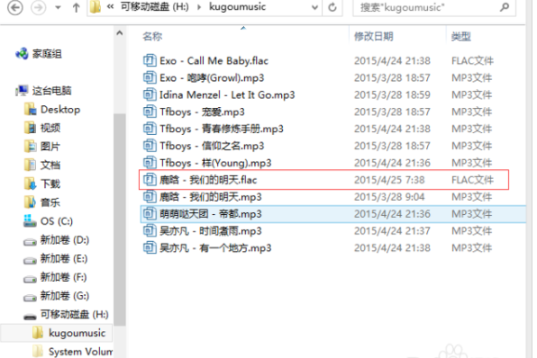 7.等传输完成后,我们打开U盘,可以找到我们刚才下载的歌曲,说明已经传到U盘中了,可以随时听歌啦。