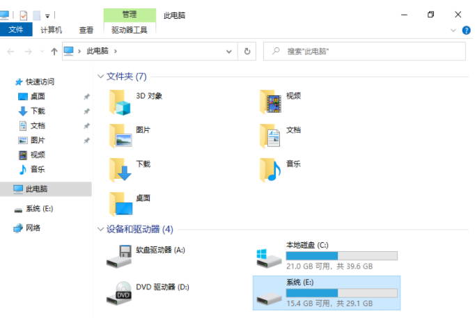 1、往电脑插上U盘,打开此电脑,进入磁盘管理器,查看U盘当前的盘符是什么,举例这里显示的是E盘。