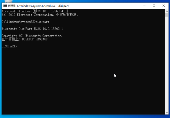 3、输入并回车执行 diskpart 磁盘分区命令。