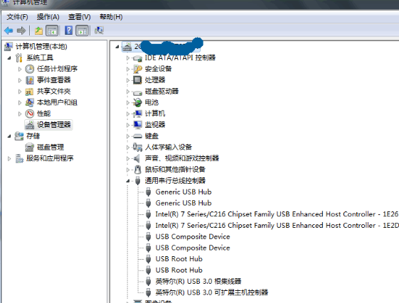 2.然后左边的设备管理器,然后点右边窗口的“通用串行总线控制器”,你会发现有一个其中带usb字符的设备显示黄色的感叹号,那就说明问题在驱动没成功安装了。