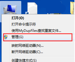 1.首先我们点击桌面上的我的电脑,在菜单里点击管理选项。