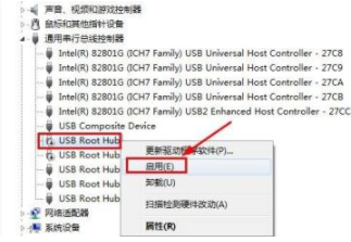 有时候电脑U盘插入不显示可能是有些朋友在电脑上禁用了电脑的USB端口,可以打开电脑的设备管理器,然后找到通用串行总线控制器,然后将这里的USB端口上单击鼠标右键,启用。