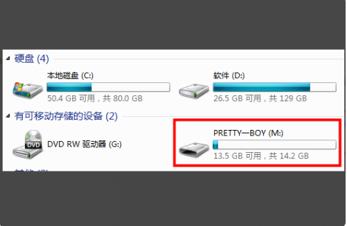 1、首先将u盘插入电脑的usb接口中,并在电脑上找到U盘。
