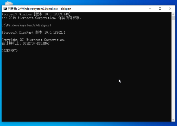 3、输入并回车执行 diskpart 磁盘分区命令;