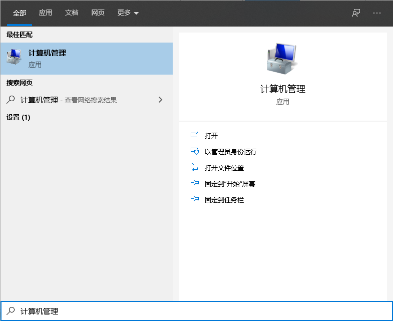 1、左下角搜索框搜索计算机管理。