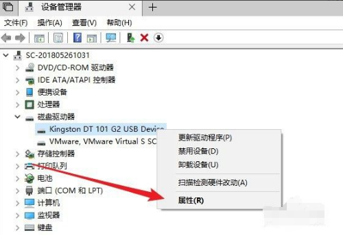 3、右键点击窗口中的U盘,在弹出菜单中选择“属性”的菜单项。