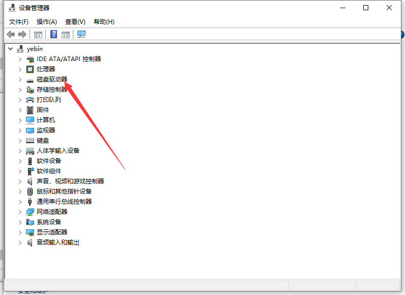 2、接下来在打开的设备管理器的窗口中点击“磁盘驱动器”的设置项。