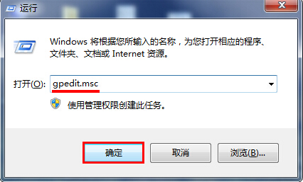 6、经以上操作后,仍然无法解决u盘无法打开的问题时,可考虑更换一个usb插口进行尝试,然后使用组合键(win键+r)打开运行窗口,并输入“gpedit.msc”再点击“确定”按钮。