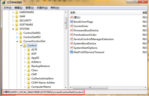 在注册表编辑器窗口中,依次打开目录“HKEY_LOCAL_MACHINE\SYSTEM\CurrentControlSet\Control”。