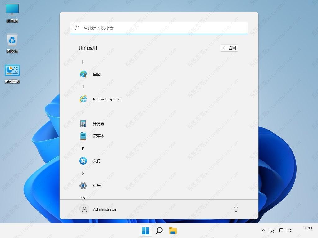 4、安装完成后使用administrator账户直接登录系统,无需手动设置账号。